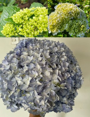 Hortencia verde, blaco verde y celeste